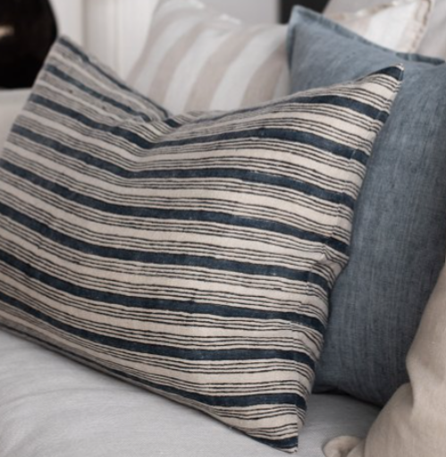 Vackra kuddfodral 40x60 i 100% linne med mönster av blocktryck. Blocktryck är en traditionell teknik som använts i många år och utförs för hand. Mönstret och ränderna på kuddfodralet har tagits fram genom blocktryck där man skurit ut mönster i träblock, som sedan färgats in och tryckts på tyget i lager. Varje kuddfodral är tillverkat för hand och textur, färg och blocktryck kan därav avvika något från bilderna. Kuddfodralet passar perfekt till både soffan och sängen och kan mixas med andra vackra prydnadskuddar och örngott. Kuddfodralen försluts med en diskret dragkedja i nederkanten och kommer utan innerkudde. Innerkudde 40x65cm passar i kuddfodralet och säljs separat.