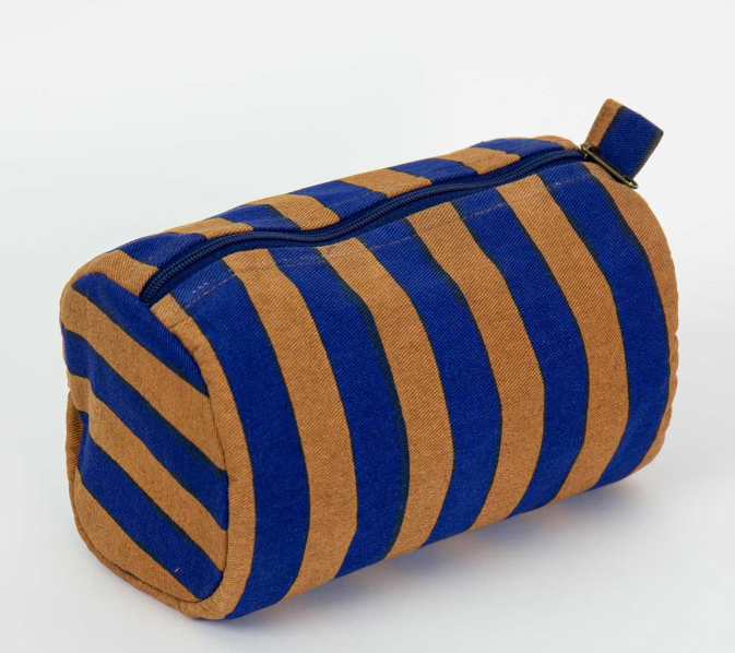 Randa necessär är en lite mindre necessär för det nödvändigaste eller för make-up. Den är tillverkad i en stadig bomullskvalitet med screentryckta ränder. Fodrad med oblekt fröskalsbomull.